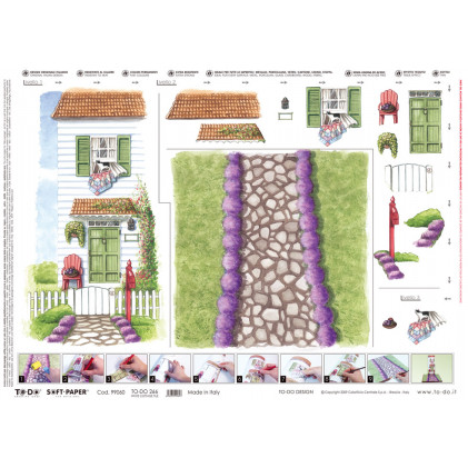 Disegni studiati appositamente per la realizzazione di soggetti a bassorilievo e stampati su Soft Paper, l'unica carta da dècoupage brevettata. Le caratteristiche tecniche e la qualità dei disegni ne fanno un prodotto unico ed estremamente versatile.