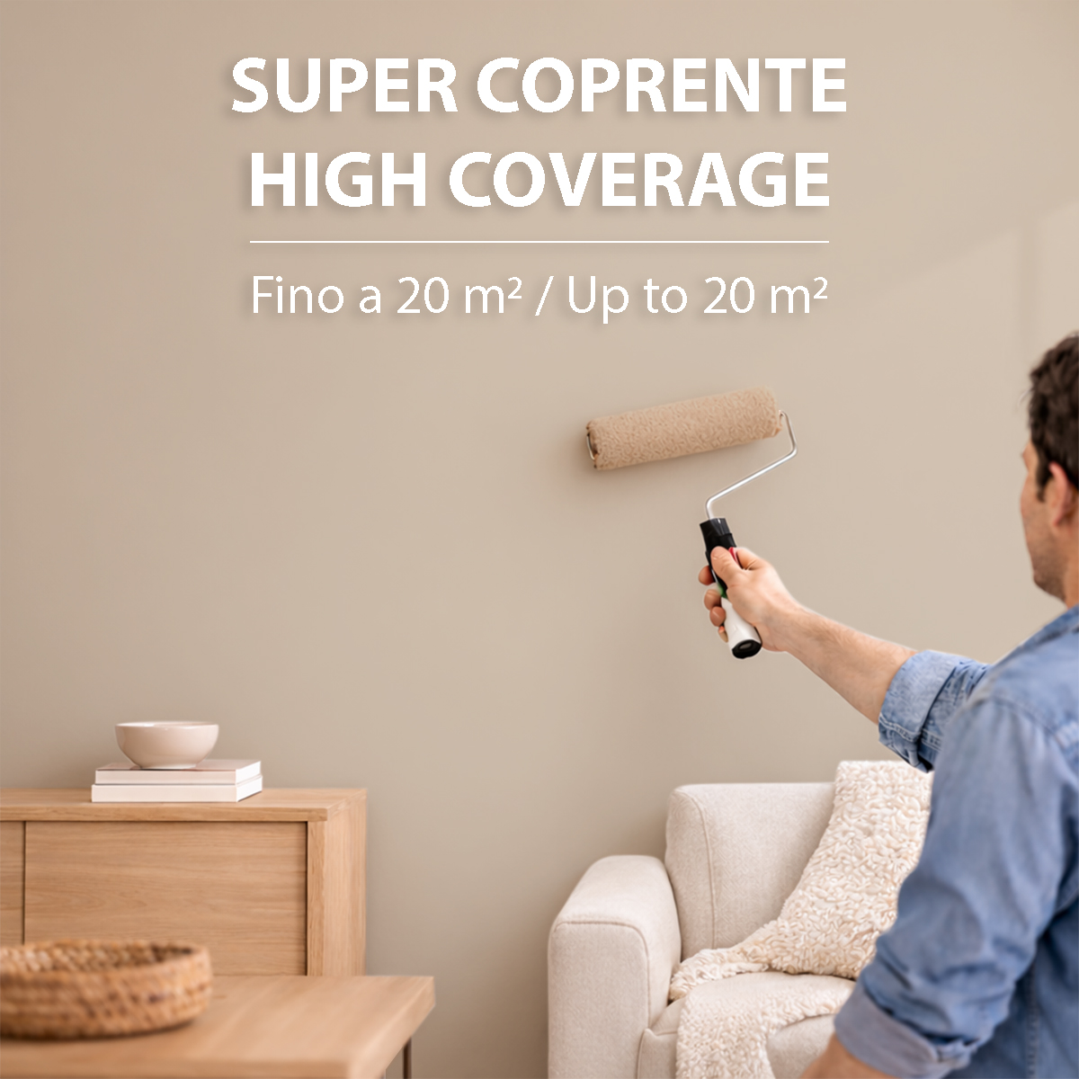 Pittura super coprente per pareti interne che crea superfici uniformi e opache dall'aspetto pulito e contemporaneo. LAVABILE (CLASSE 3) - Superfici lavabili e resistenti ideali per ambienti domestici come soggiorno, camere e corridoi.