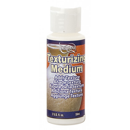 Medium Effetto Materico. Mescolare con colore acrilico per conferire un effetto testurizzato. Ha colore neutro e consistenza sabbiosa al tatto. Applicabile su legno, ceramica, plastica e quasi tutte le superfici solide. Miscelare 80% Texturizing medium e 20% acrilico. Applicare a pennello o a spatola.