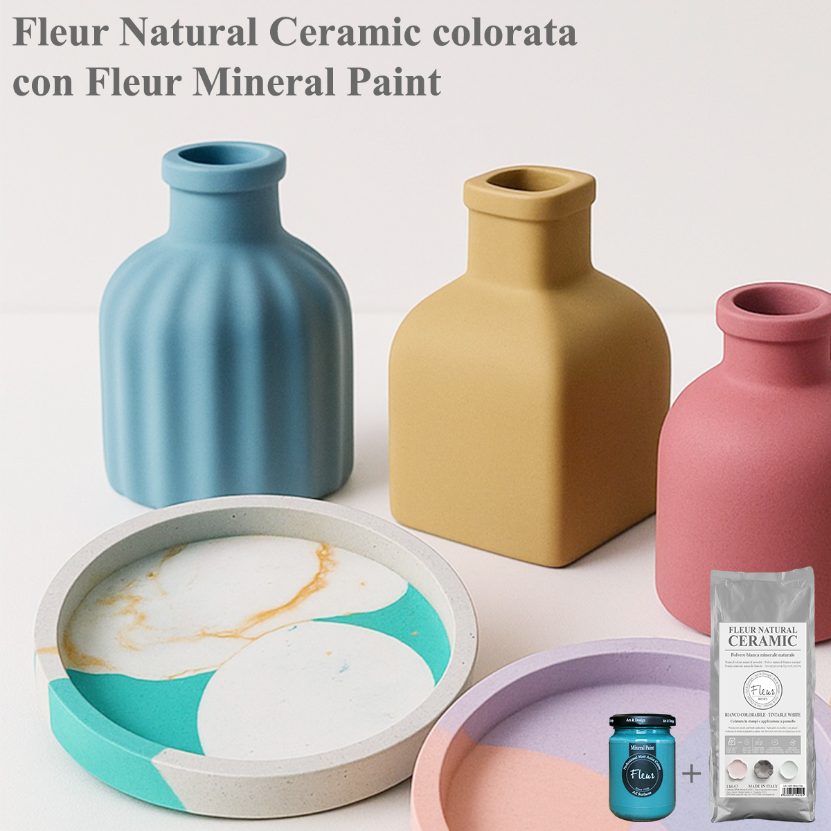 Fleur Natural Ceramic Bianco Naturale Colorabile è una polvere bianca minerale naturale, a base acqua, fine e inodore.