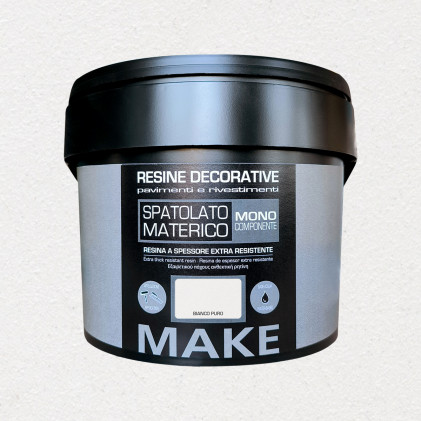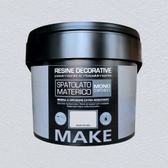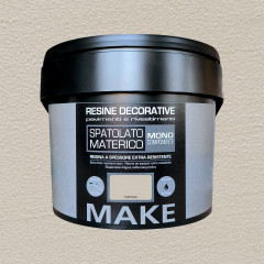 Resina decorativa monocomponente a spessore. Extra resistente. Pronta all'uso, inodore. Applicare con rullo e uniformare con spatola/frattazzo per creare effetti materici. Resa per confezione circa 8 m2 per mano. Pulizia attrezzi con acqua.